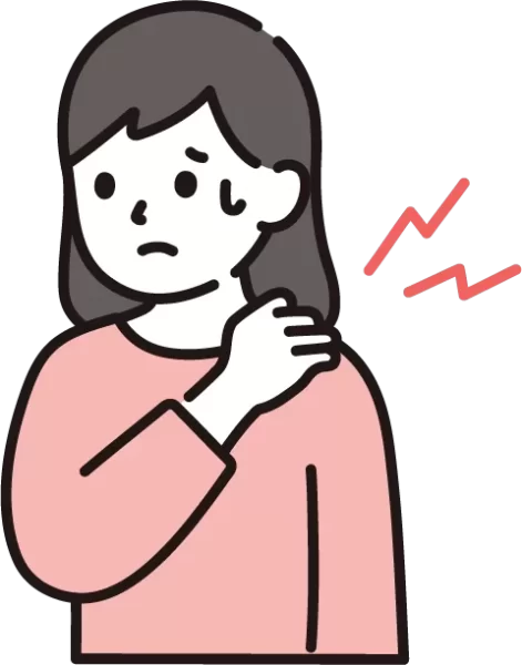 主な症状 浅い呼吸は、体内に取り込む酸素量を減らし、自律神経の乱れを引き起こします。これにより、身体は常に疲労感が抜けにくい状態、集中力が持続しない状態に陥ります。また、内側に巻いた肩は、肩関節の動きを制限し、肩の痛みや可動域の低下を招きます。